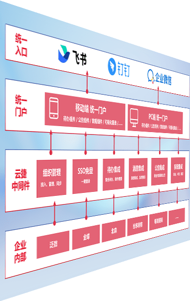 对协作平台提供支持服务,,支持企业应用与协作平台对接,,包含组织同步、、、、消息集成、、、、待办集成等。。支持目前主流的协作平台:钉钉、、企微和飞书。。。